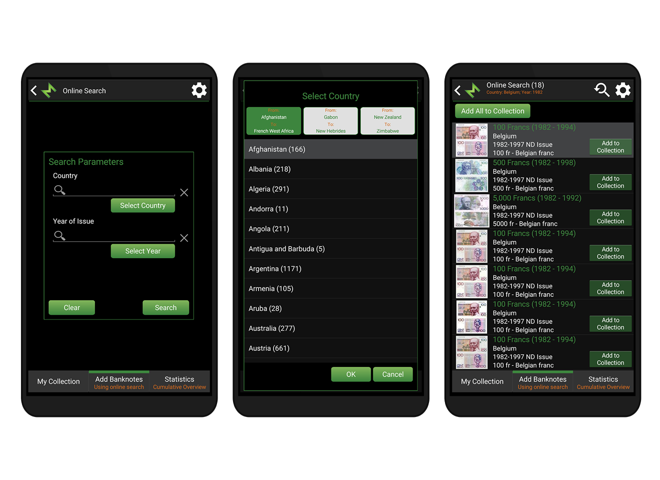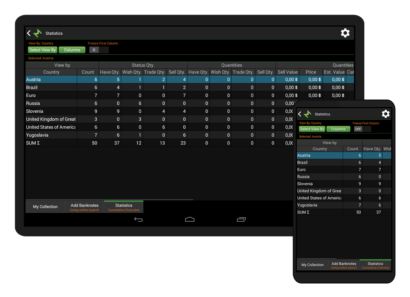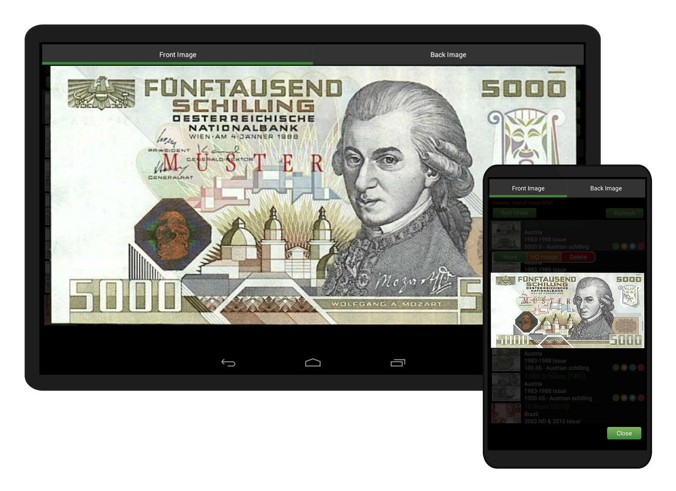 Simply browse your banknote collection. Sort lists any way you want. Find banknotes quickly and easily. Keep track of your collection and wishlist.