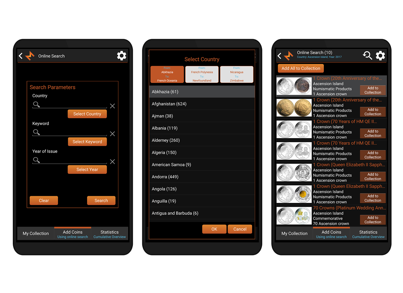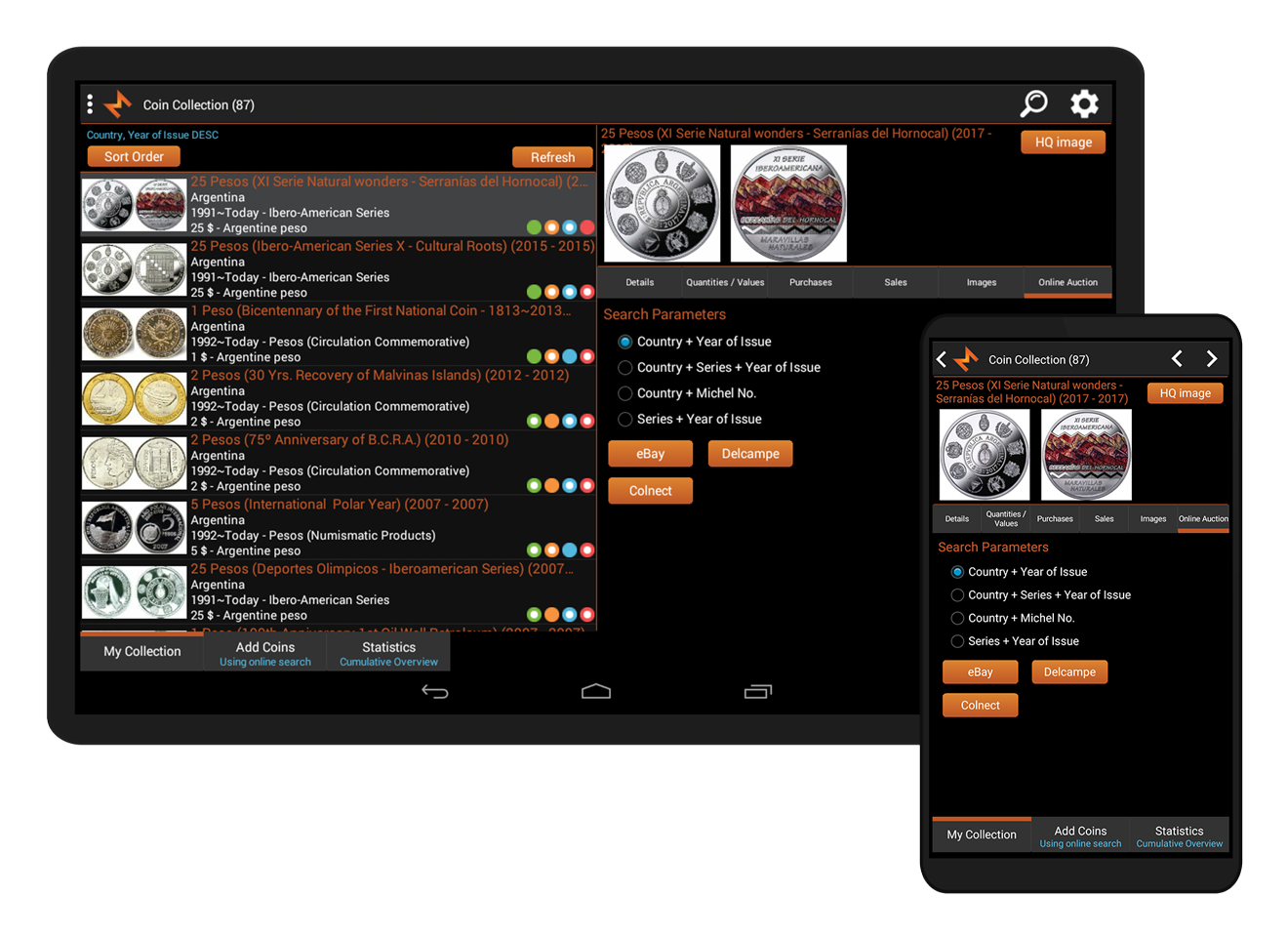 Automatically import coin information with images using Colnect's online database with more than 206.000 coins from 526 countries.