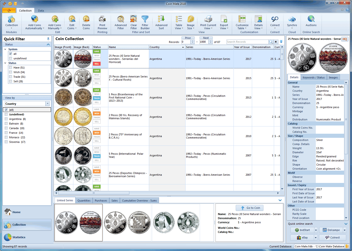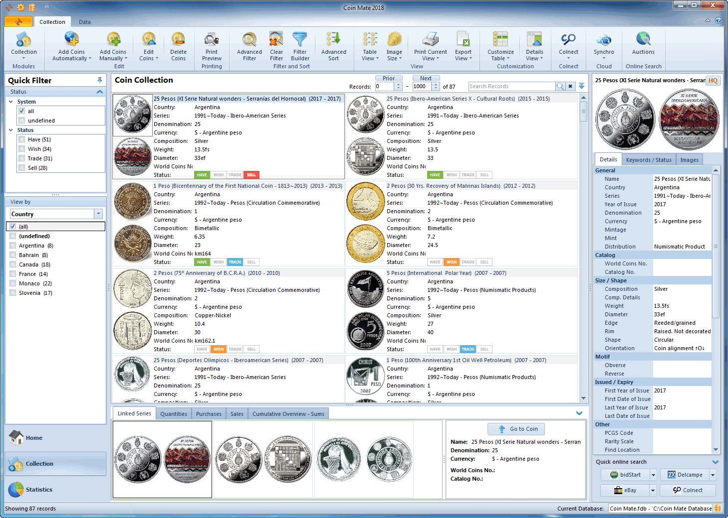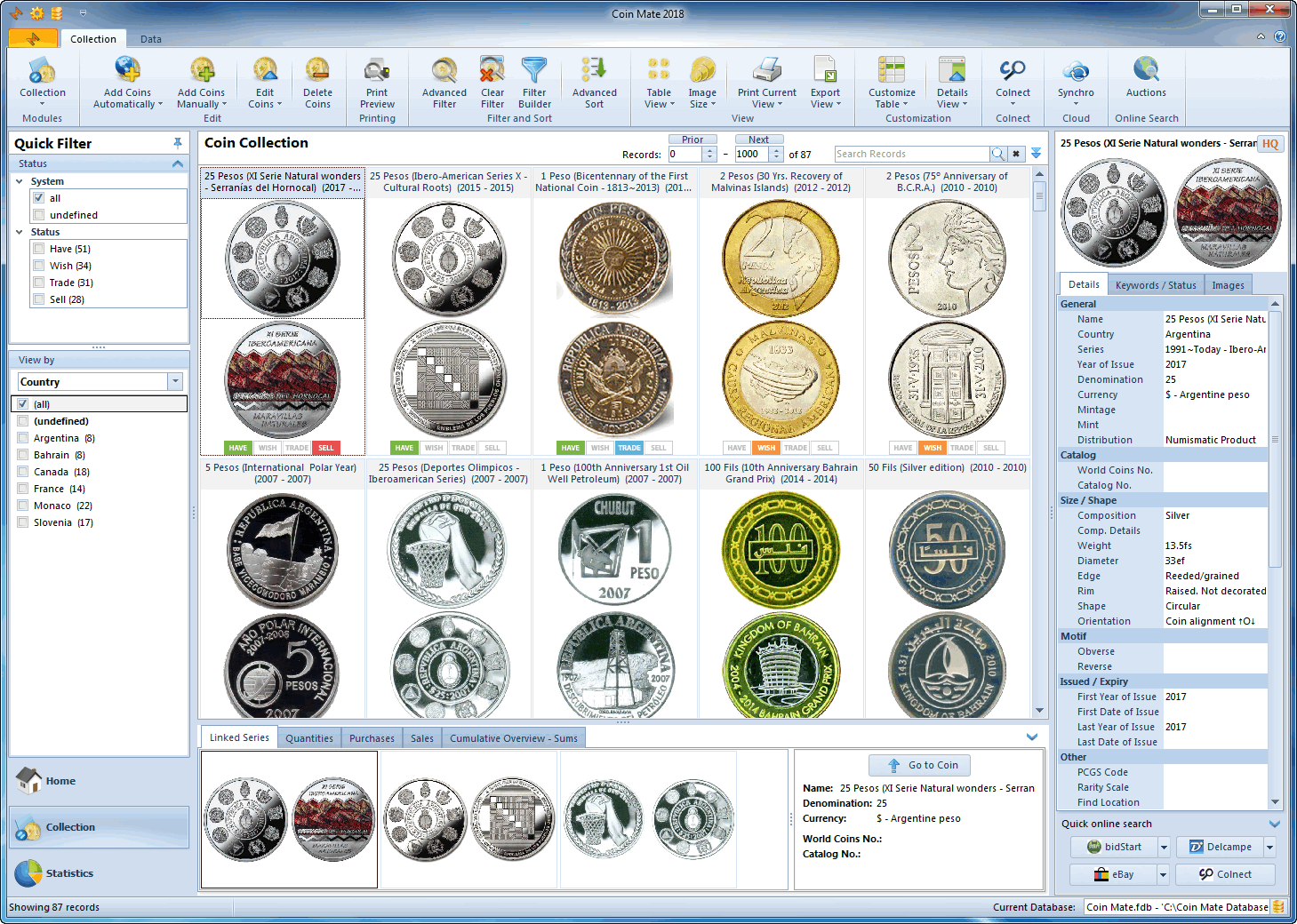 Browse, sort and search your coin collection.